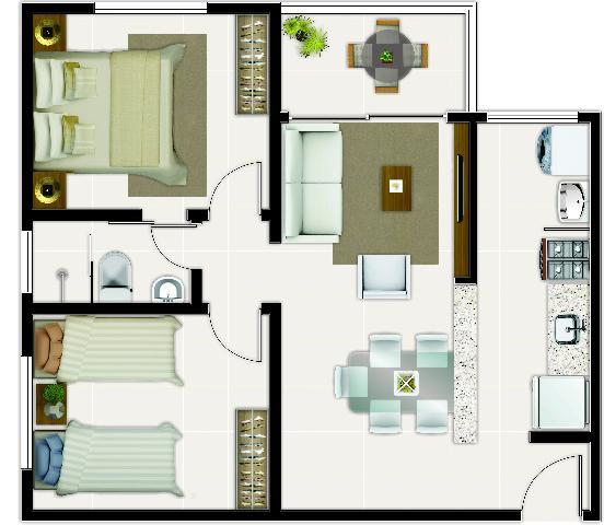 Aptos de 50,24m2 - 2 quartos (1 Suite)
